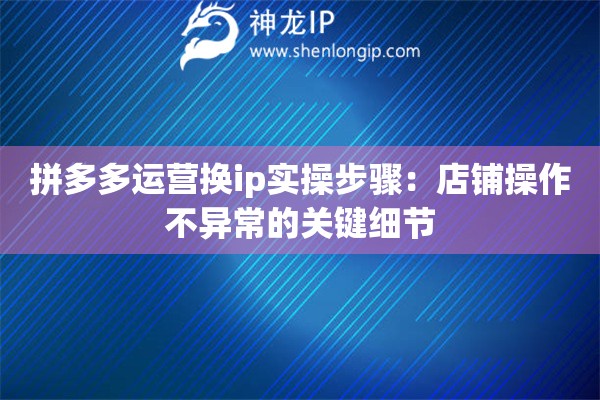 拼多多店铺运营换ip实操指南:避免账号异常的细节大全