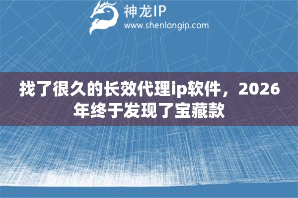 如果你也和我一样,厌倦了无休止的寻找和测试,渴望一个能长期稳定陪伴你处理网络业务的工具,那么神龙IP值得你重点关注。2026年,在众多选择中,它凭借扎实的技术和用户至上的体验,成为了我心中当之无愧的宝藏款代理IP软件。或许,你的漫长寻找,也可以在这里画上一个圆满的句号。