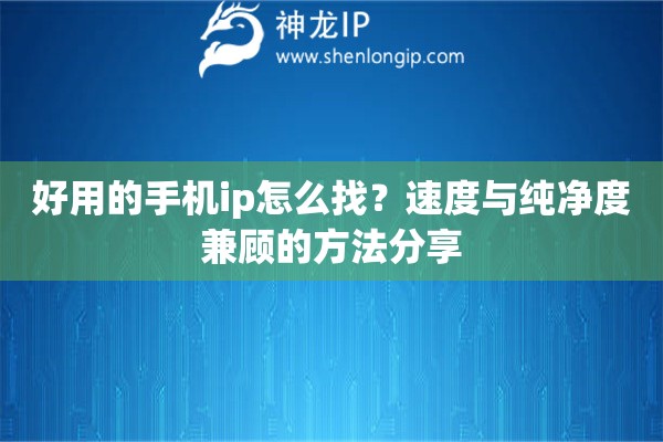 好用的手机ip怎么找?速度与纯净度兼顾的方法分享