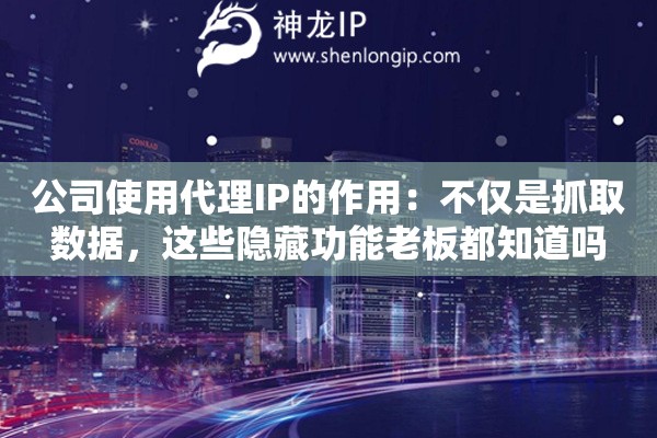 在很多公司老板和技术负责人的印象里,代理IP似乎就是技术部门用来抓取公开数据的工具。一提到它,脑海里浮现的可能是程序员写脚本、爬数据的场景。这确实是代理IP最广为人知的一个用途,但如果你公司的代理IP只用来做这个,那可能就有点“大材小用”,甚至浪费资源了。实际上,一个稳定可靠的代理IP服务,比如神龙IP,能为企业运营带来一系列意想不到的“隐藏功能”,这些功能往往能直接提升效率、降低成本、甚至保护核心业务安全。今天,我们就来聊聊这些老板们可能还不知道的“妙用”。