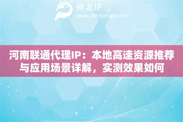 河南联通代理IP:本地高速资源推荐与应用场景详解,实测效果如何