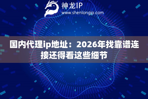 你是不是也遇到过这种情况?想在网上快速浏览不同地区的商品信息,或者管理多个需要不同网络环境的账号,却发现自己的网络IP地址总是“固定不变”,操作起来束手束脚。又或者,在进行一些需要稳定网络连接的工作时,普通的网络环境波动太大,严重影响效率。这时候,一个靠谱的国内代理IP地址就成了解决问题的关键。它就像给你的网络连接装上一个“智能导航”,能灵活、稳定地为你规划路径。但面对市场上五花八门的选择,怎么在2026年这个时间节点,找到真正靠谱的那个呢?今天,我们就来聊聊那些决定成败的细节,而像神龙IP这样专注于提供优质国内IP地址更改服务的品牌,正是通过在这些细节上做到极致,赢得了用户的信赖。