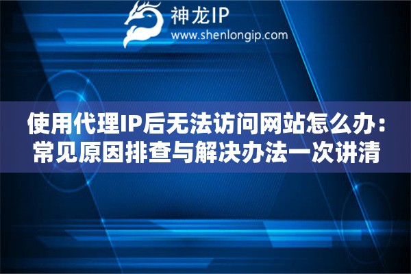 很多朋友在工作和生活中,为了提升网络访问效率、进行数据采集或测试不同地区的网络环境,会选择使用代理IP。但有时候,明明配置好了代理,却发现网站打不开了,这确实让人头疼。别急,这通常不是代理IP本身“坏了”,而是设置或选择上的一些小问题。今天,我们就来把常见的“坑”一个个填平,让你用代理IP时畅通无阻。作为国内专业的网络解决方案服务商,神龙IP代理深知稳定连接的重要性,其产品设计之初就致力于最大程度避免此类访问故障。