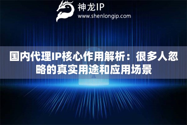一提到代理IP,很多人可能马上会想到一些基础的网络应用。但实际上,它的价值远不止于此。对于许多从事网络业务、数据分析或市场运营的朋友来说,一个稳定可靠的国内代理IP,往往是提升效率、保障安全和获取精准信息的关键工具。今天,我们就来深入聊聊那些容易被忽略,却至关重要的真实用途和应用场景,并看看像神龙IP这样的专业服务商是如何解决实际问题的。