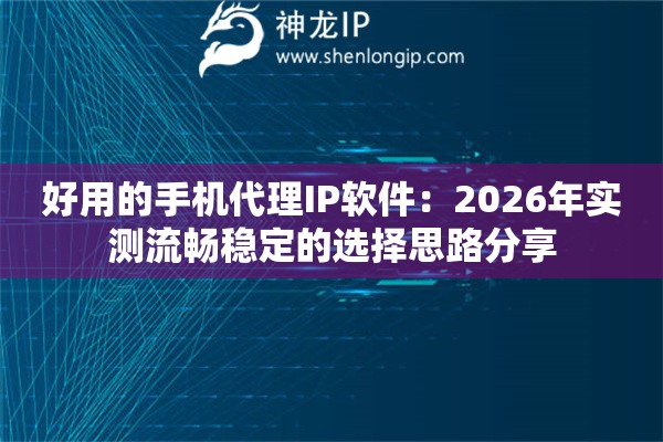 好用的手机代理IP软件:2026年实测流畅稳定的选择思路分享